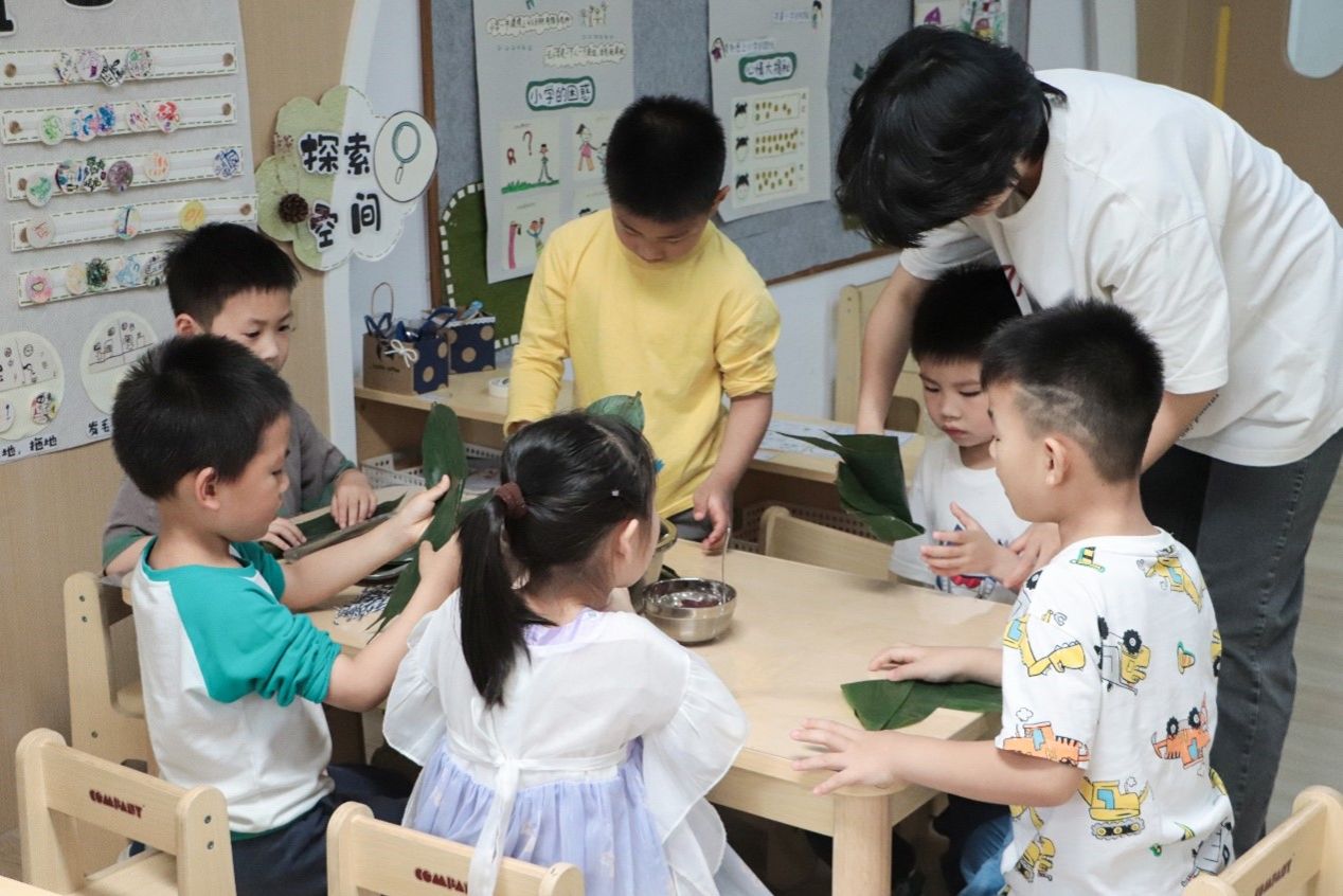 “我跟着家中的长辈学习了包粽子的方法,活动开始前,也在网上看了许多包粽子的视频。”为了给小朋友们教授正确的粽子制作方法,食品科学与工程专业2023级徐玉湄做了很多准备。在包粽子环节中,徐玉湄一边讲解有关端午的知识,一边帮助小朋友们进行粽子的制作。小朋友们“有样学样”,对折粽叶,舀起糯米,放入馅料,扎紧粽子……看着原本空荡荡的铁盆被粽子填得满满当当,徐玉湄表示,“小朋友们的动手能力非常强,超乎了我的想象,包出的粽子各式各样,各具特色。”