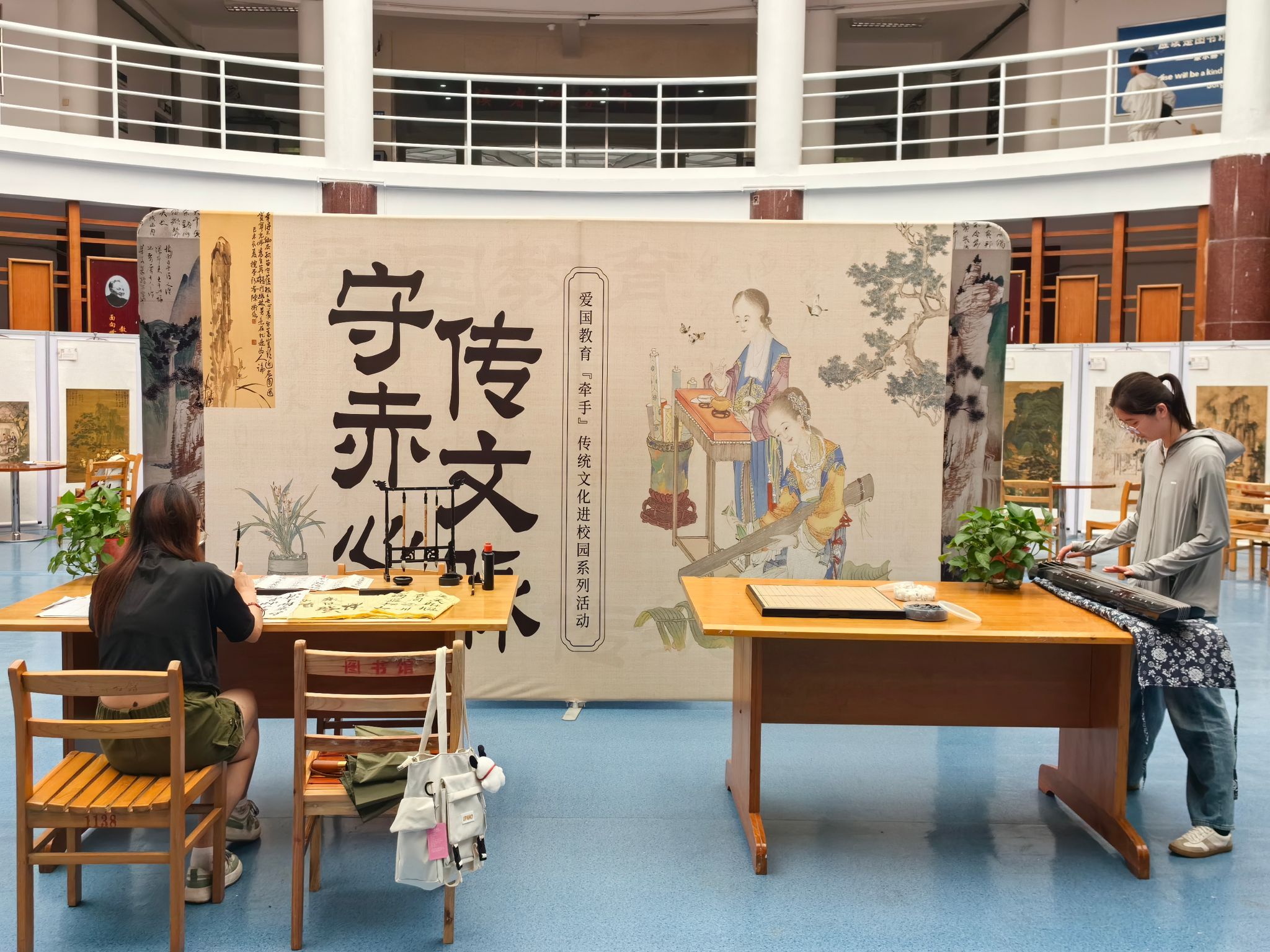 6月12日,图书馆开展爱国教育“牵手”传统文化进校园活动。活动聚焦中国古代君子四艺“琴棋书画”,通过多元化的展出方式,让广大师生近距离感受中华传统文化的魅力。