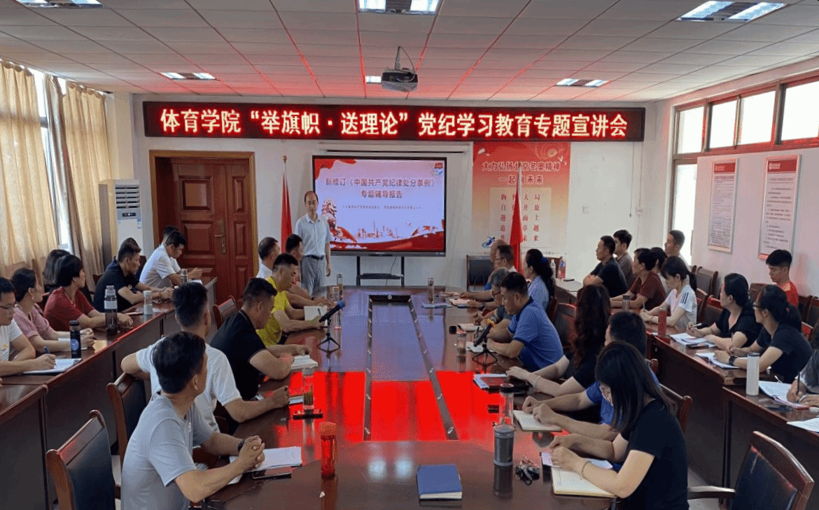 6月12日,学院在体育馆三楼会议室举办党纪学习教育专题宣讲会。会议由党委副书记、纪委书记王玮围绕新修订《中国共产党纪律处分条例》进行专题辅导报告,学院党委领导班子成员和全体教师党员参加学习。