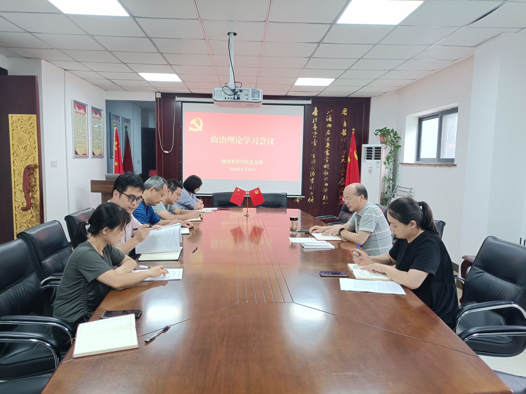 6月19日,继续教育学院党支部开展党纪学习教育专题学习,支部全体党员参加学习,党支部书记韦长发主持学习活动。