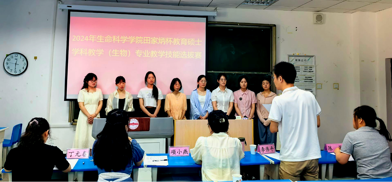近日,生命科学学院举行2024年生命科学学院田家炳杯教育硕士学科教学(生物)专业教学技能选拔赛。学科教学(生物)专业2022级、2023级研究生参加此次选拔赛。安庆二中一级教师李伟平以及生命科学学院教师项小燕教授、丁元春副教授、张明珠副教授、陈晨博士共同担任选拔赛评委。