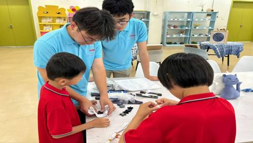 活动伊始,法学院扎染俱乐部负责人刘亚向孩子们介绍了扎染的基本技巧,包括如何折叠布料、扎绑方法以及染色技巧等。孩子们迫不及待地动手实践,选择自己想要的工具进行扎染的创造。在指导教师和志愿者的耐心引导下,一幅幅由孩子们亲手创造的独一无二的扎染作品逐渐展现在众人的眼前。从最初的白布到最后色彩斑斓的成品,孩子们看着自己亲手制作的作品,脸上都绽放出了灿烂的笑容。制作完成后,孩子们互相分享自己的扎染作品,本次扎染体验活动在一片欢声笑语中结束。