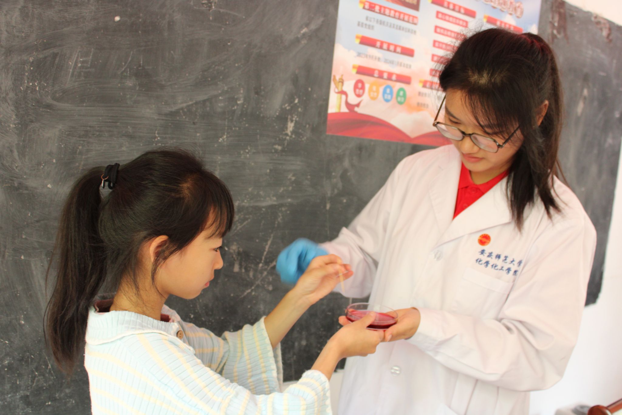 “玻璃棒怎么可以像火柴一样,点燃了酒精灯呢?”2018年,趣味化学科普公益实践团在西冲村开启了第一次暑期三下乡实践活动。七年后,在当时的团队指导教师白国梁的带领下,8名师生接过科普的接力棒,为当地的孩子们带来了更加丰富、有趣的化学实验。