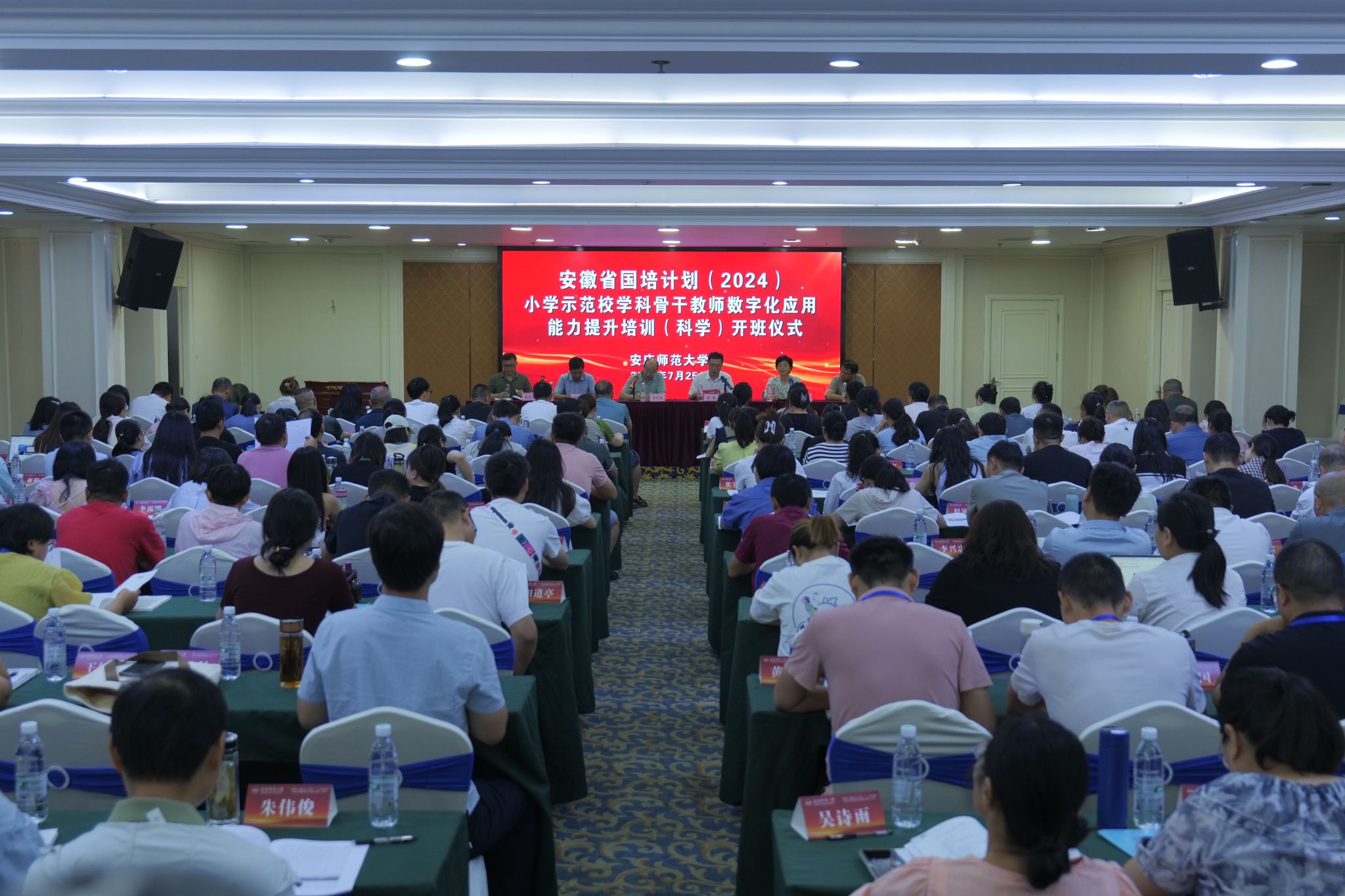 7月25日,数理学院承办的安徽省“国培计划(2024)”—小学示范校学科骨干教师数字化应用能力提升培训(科学)举行开班仪式。继续教育学院院长韦长发,数理学院党委书记陆健,数理学院副院长张海、殷周平,项目负责人、数理学院党委副书记彭芳珍,项目首席专家方官文参加开班仪式。仪式由韦长发主持。