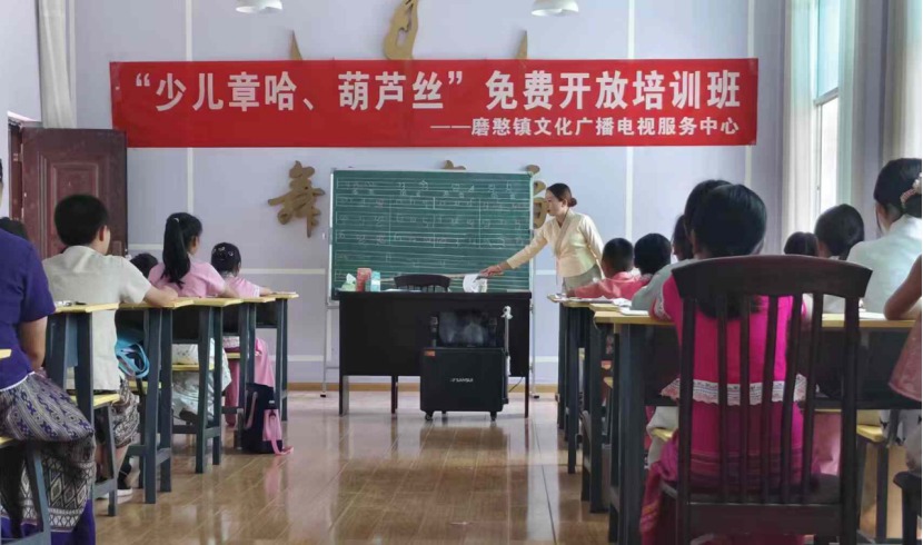 磨憨镇是一个多民族聚居的边境山区镇,聚集着傣族、哈尼族、瑶族、拉祜族等多个少数民族。其中,傣族是磨憨镇占比较大的主要民族之一,傣语和章哈作为傣族文化的瑰宝,一直是磨憨镇文化广播电视服务中心免费向孩子们开放的课程。