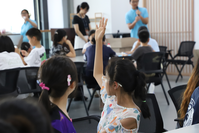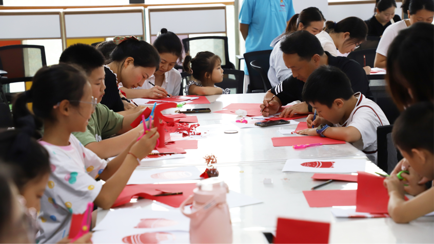 每日课前,居住在博物馆附近的市民李锐便会带着九岁和五岁的两个小孩,早早地来到教学现场,等待非遗课堂的开始。“暑期艺术工坊为孩子们提供了一个锻炼动手能力的机会,也让我们不再止步于驻足观看,而是走近非遗,感悟非遗,传承非遗。亲身体验缠花和中国结,我对非遗文化有了更加了解了。”李锐说。