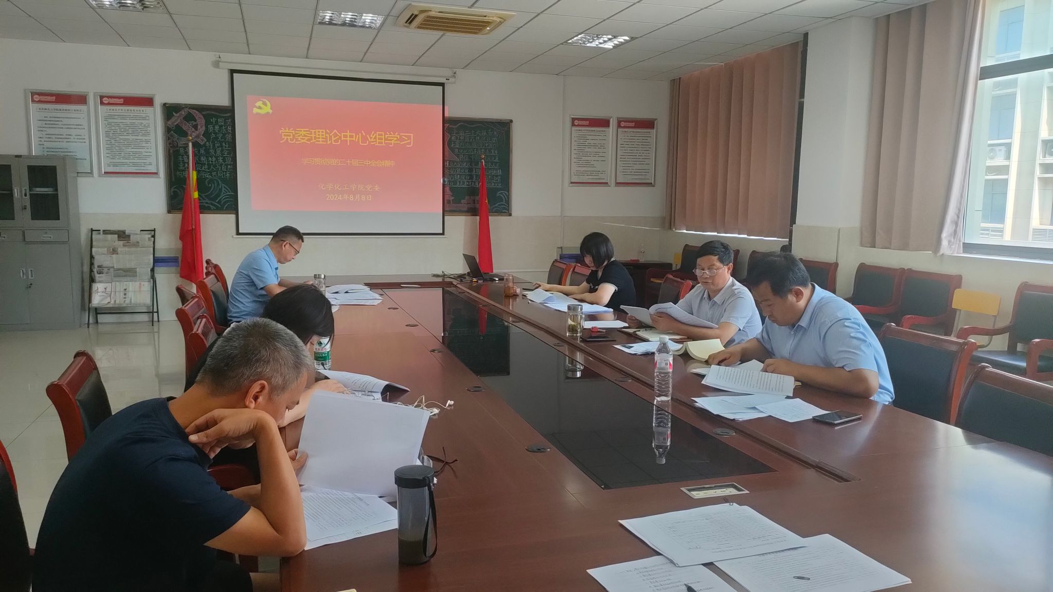 8月8日,化学化工学院党委书记李新建主持召开党委理论中心组学习会议,专题学习党的二十届三中全会精神。学院全体党委委员参加会议。
