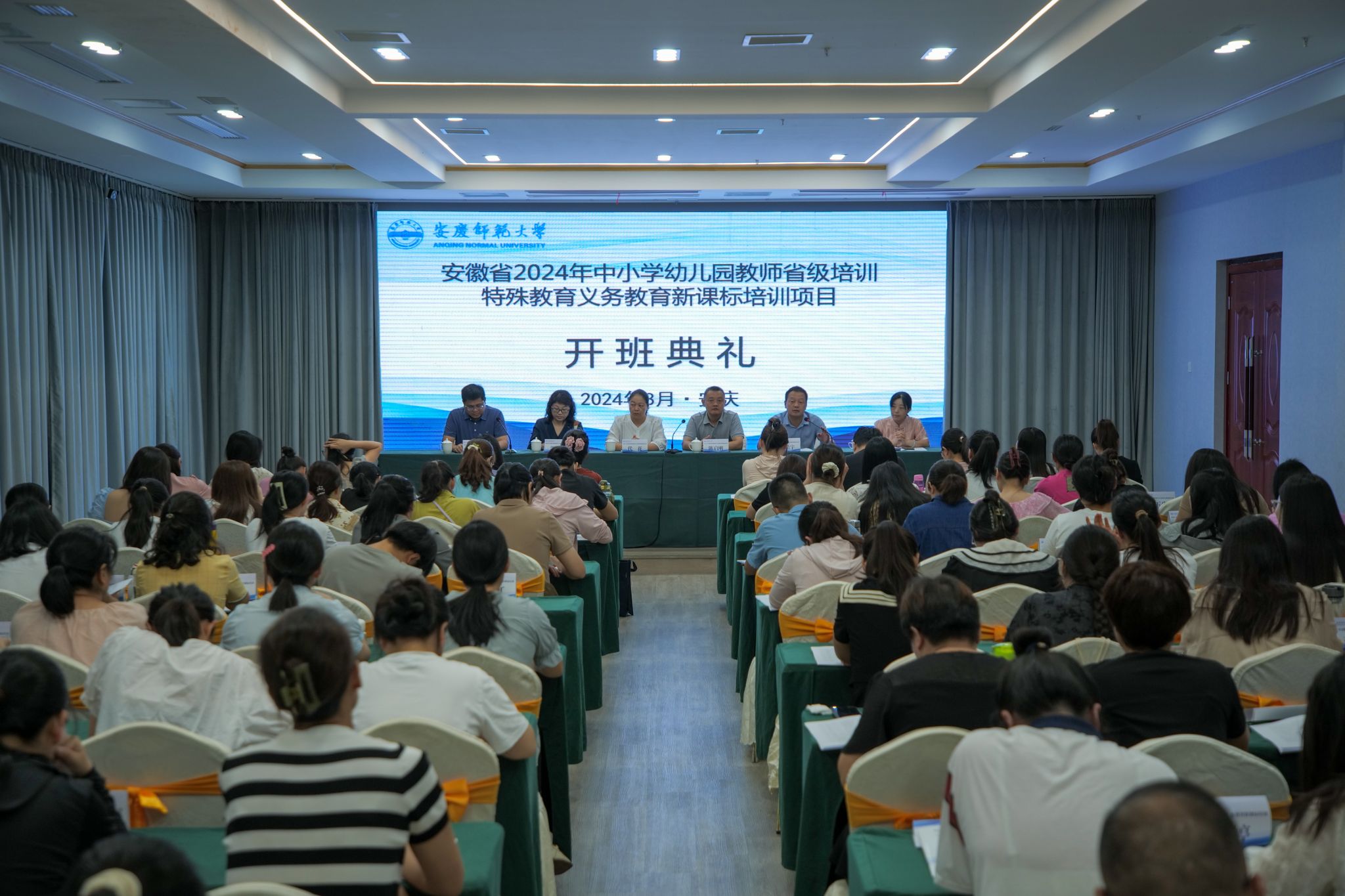 8月21日,安徽省2024年中小学幼儿园教师省级培训——特殊教育义务教育新课标培训班在beat365官网开班。安徽省教科院特殊教育教研员陈启刚,继续教育学院副院长代花,教师教育学院副院长王皓宇,教师教育学院特殊教育系主任、项目首席专家郭启华教授出席开班式。来自全省各市县的100名特殊教育骨干教师参加培训。