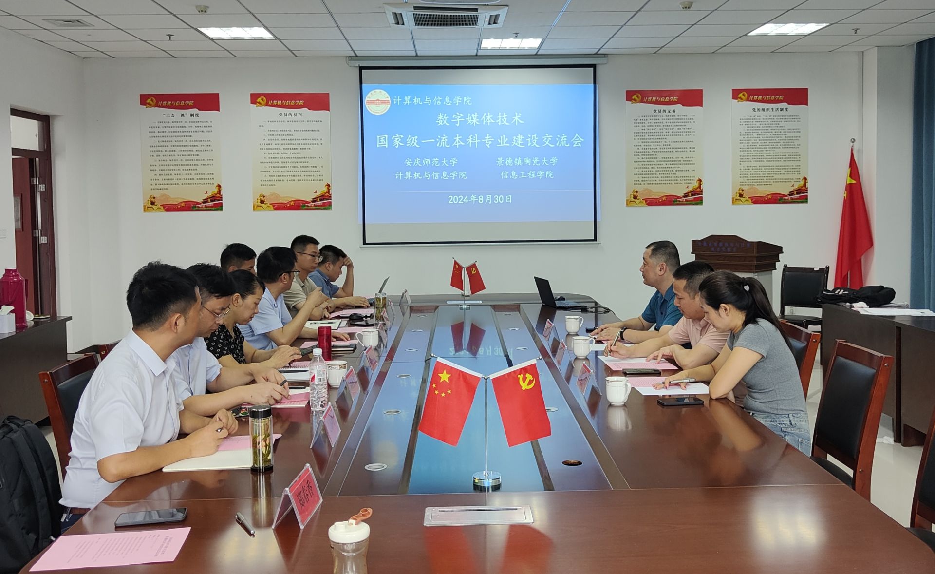 8月30日上午,景德镇陶瓷大学信息工程学院院长贾建华、办公室主任耿健、数字媒体技术专业负责人林洋一行到计算机与信息学院进行调研交流。计算机与信息学院党政领导、数字媒体技术专业教研室负责人和部分骨干老师参加本次交流会。