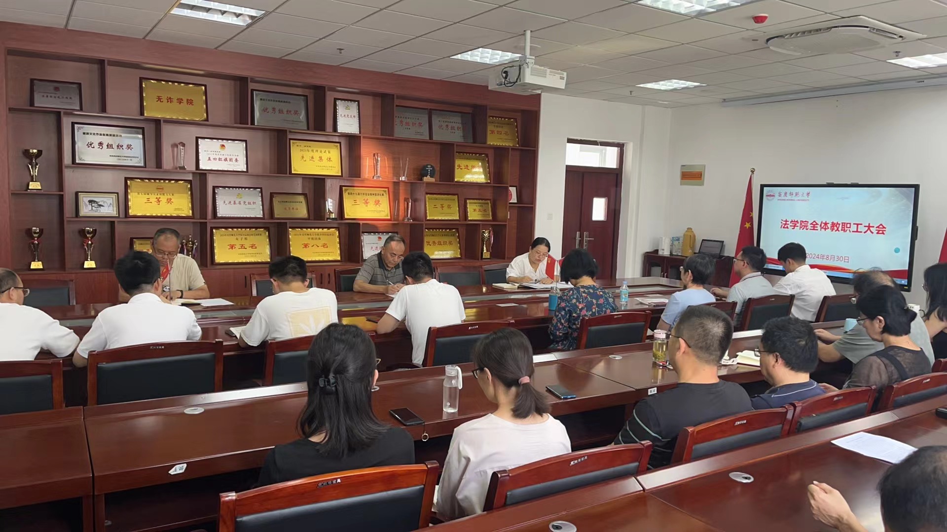 8月30日,法学院召开学习贯彻党的二十届三中全会精神暨全体教职工会议。法学院领导班子成员和全体教职工参加会议。会议由法学院副院长朱留虎主持。