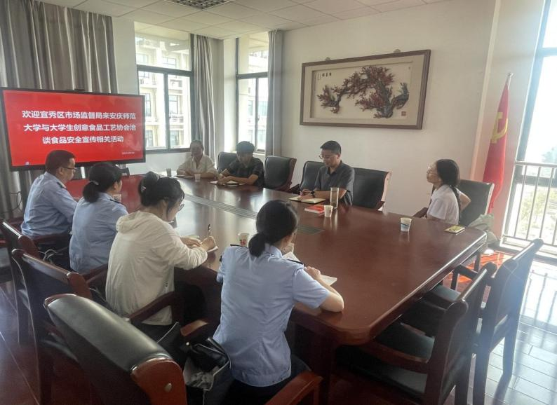 9月6日,beat365官网大学生创意食品工艺协会与宜秀区市场监督管理局就食品安全相关活动及长期合作进行洽谈,旨在通过合作提升学生食品安全意识,增强公众对食品安全的认知,共同构建坚固的食品安全防线。