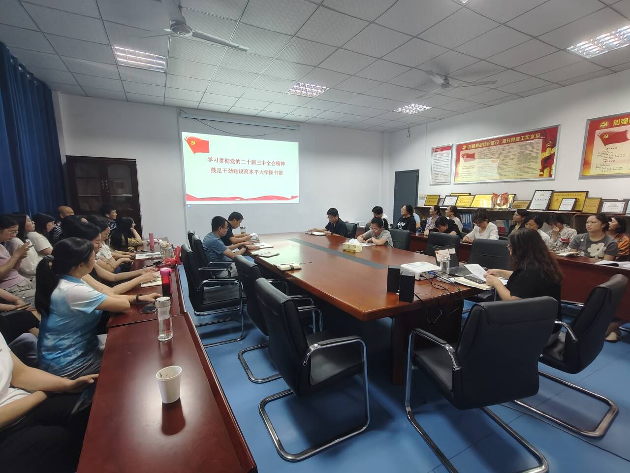 9月29日,图书馆召开教职工政治理论学习会宣讲党的二十届三中全会精神。图书馆党总支书记、馆长刘燕以 “学习贯彻党的二十届三中全会精神 鼓足干劲建设高水平大学图书馆” 为题展开宣讲。图书馆全体教职工参加会议。会议由图书馆副馆长汪斌主持。