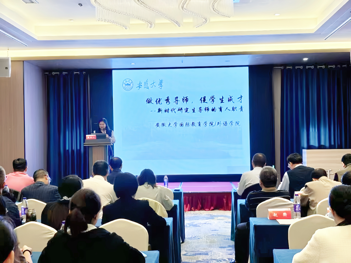 胡健基于自身指导经验,作题为“做优秀导师,促学生成才”报告。她依据国家、省、校、院级等文件精神和要求,根据当前研究生培养过程中出现的现象,详细介绍了在学生成才过程中导师应肩负的职责,分析了人才培养过程中导师应如何帮助学生解困与给予指导,强调了指导过程中导师应承担的合适角色。
