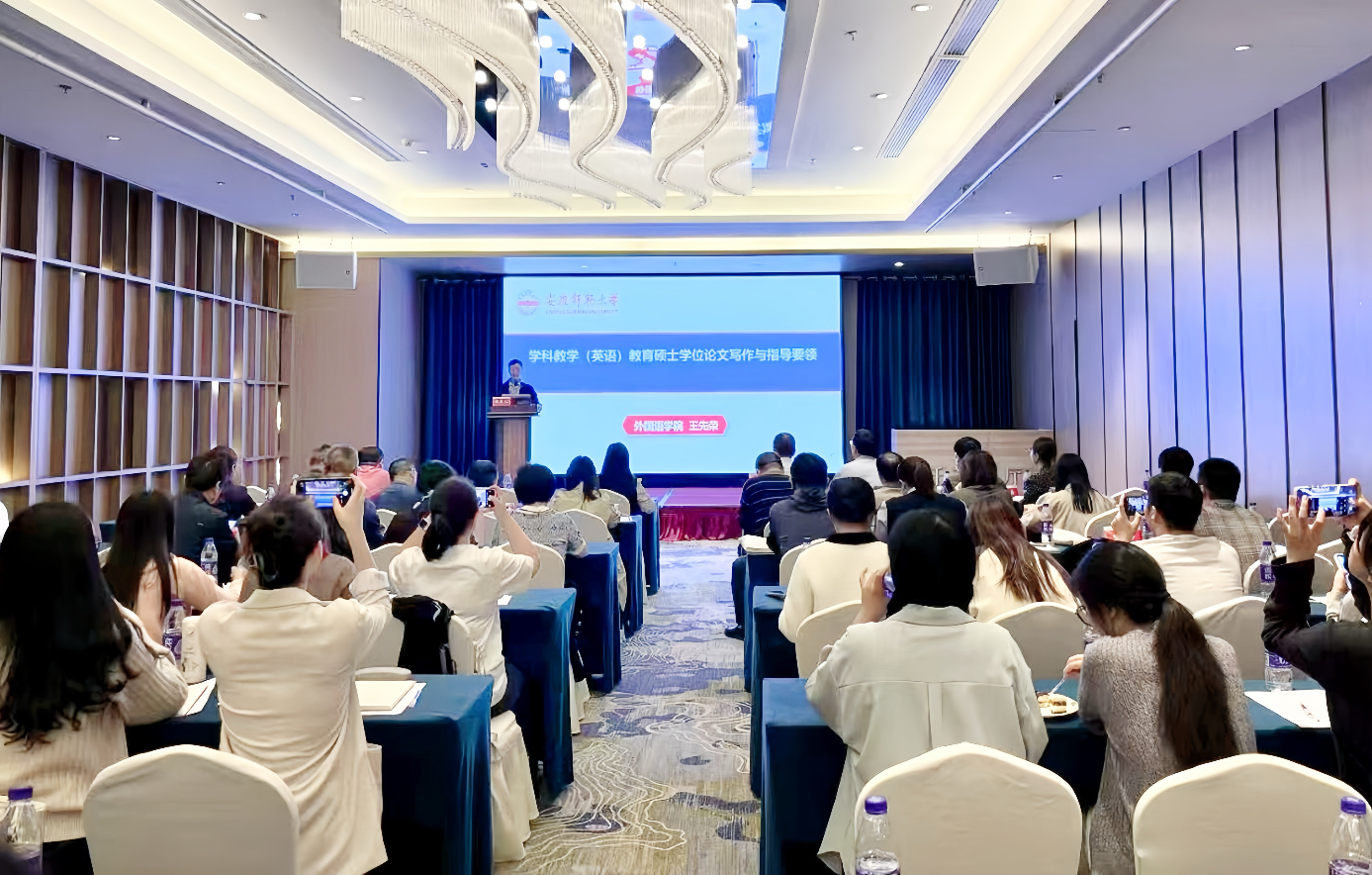 王先荣根据学科教学(英语)专业学生论文写作现状,作题为“学科教学(英语)学位论文写作与指导要领”报告。他结合具体实例,围绕学位论文的选题以及论文写作要领,全面阐述了论文选题应遵循的原则以及论文写作和指导的核心和要点。