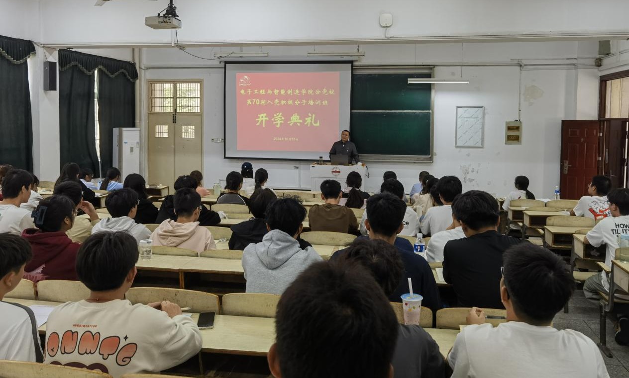 10月15日,电子工程与智能制造学院举行第70期入党积极分子培训班开班仪式。电子工程与智能制造学院党委书记夏云高出席开班式并讲话。仪式由电子工程与智能制造学院党委副书记、纪委书记高栋梁主持。