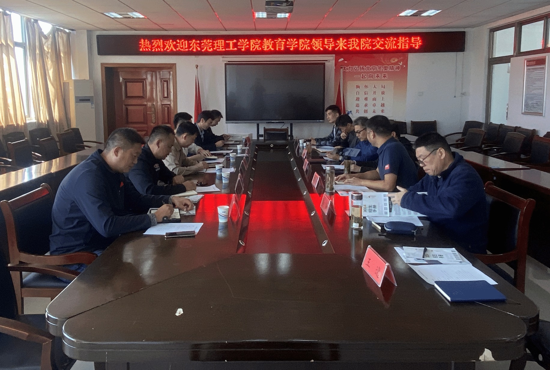 近日,东莞理工学院教育学院(师范学院)党委书记张伟林一行来体育学院调研交流。beat365官网体育学院领导班子和校体委办、公共体育部、教学办公室、实训实验中心等科室负责人进行了座谈交流。