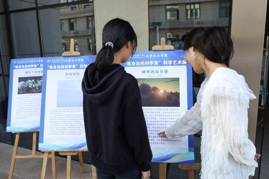 “蕴藏在夕阳中的科学美”“神奇的向日葵”“烟花下的秘密”……环境科学与工程学类专业2024(2)班的程子越一一看过“我身边的科学美”科学艺术展展板上的内容。“原来向日葵的花瓣中也蕴含着科学奥秘,真的是‘长见识’了。”她笑着说。近日,化学化工学院举办“我身边的科学美”科学艺术展,来自全校不同专业的300余名学生参与活动。