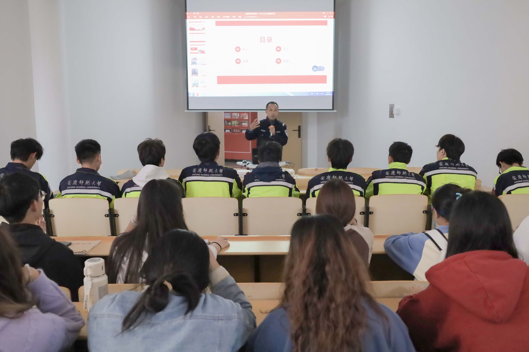 在知识宣讲环节,宣讲人通过丰富的火灾警示案例,从防火、灭火、疏散、报警四个方面普及消防知识。“触目惊心的火灾现场图片、生动具体的案例分析……宣讲从校园实际出发,增强了我们的校园消防安全意识,我们要将消防安全牢记于心,防范火灾于未然。”国防示范教育班的杨潇同学谈学习体会时说到。