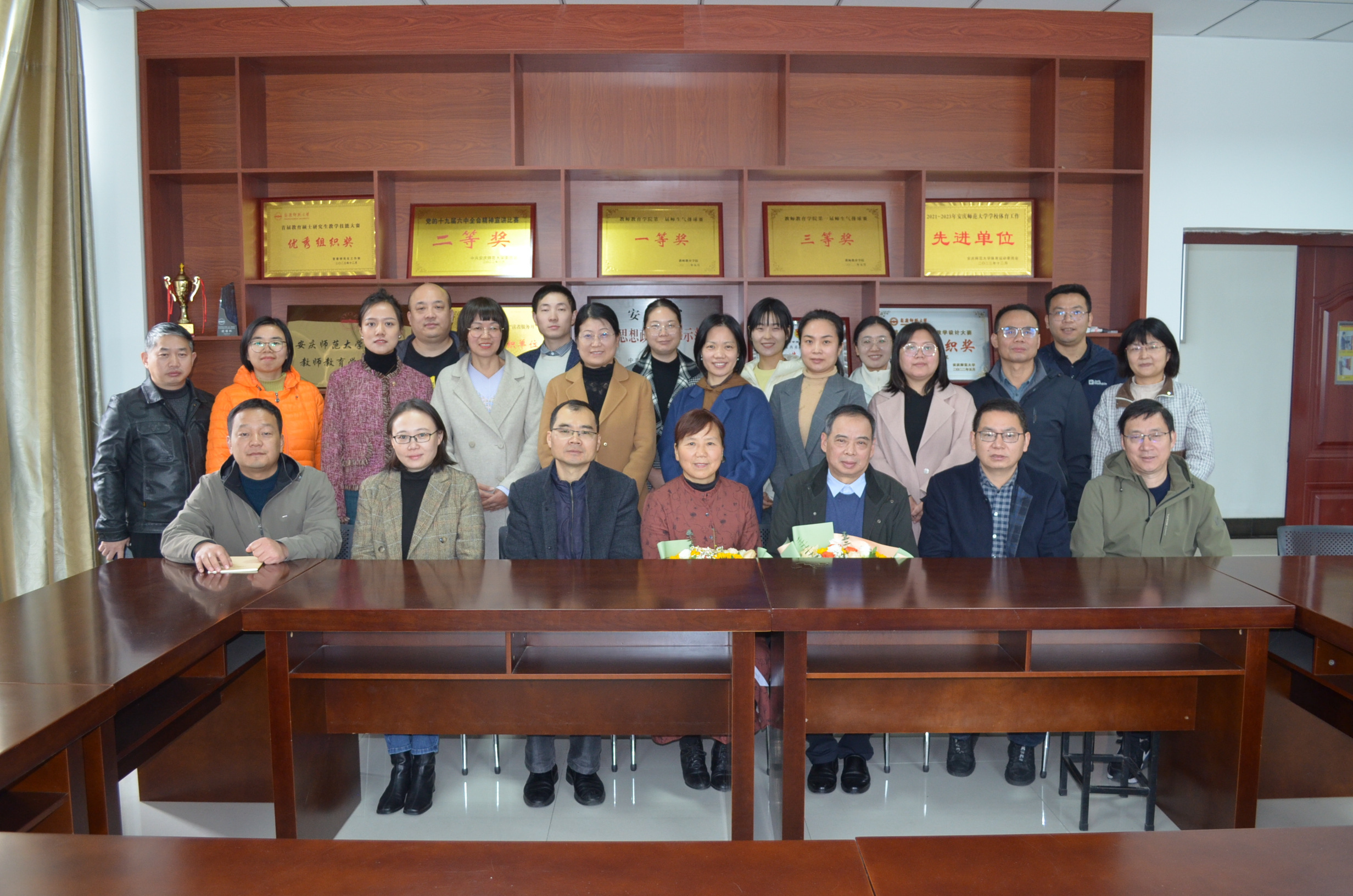 教育科学学院副书记许世平介绍了两位教师的基本情况和在学院工作的经历。与会同志回顾了与两位老师并肩工作的点点滴滴,表达了对两位老师荣退的依依不舍之情。张启树、陈琳深情回顾了自己在工作岗位上度过的难忘岁月,分享了自己的工作阅历和人生感悟,表达了对学院未来发展的美好期许。两位学生代表分别给两位荣退老师赠送了鲜花。整个座谈会在轻松愉悦的气氛中圆满结束。(撰稿:郭静文 摄影:朱克勤 编辑:江伟 审核:何孔蛟 赵丽丽)
