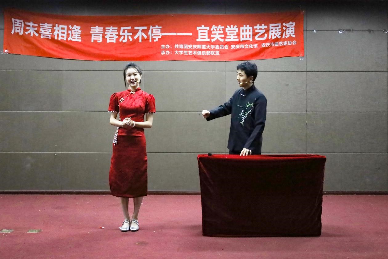 诙谐逗趣的相声、抑扬顿挫的快板、娓娓道来的评书……11月17日,宜笑堂曲艺俱乐部在龙湖食堂三楼活动中心开展曲艺展演活动。8个节目、4种不同的表演形式,吸引200余名学生前来观看。