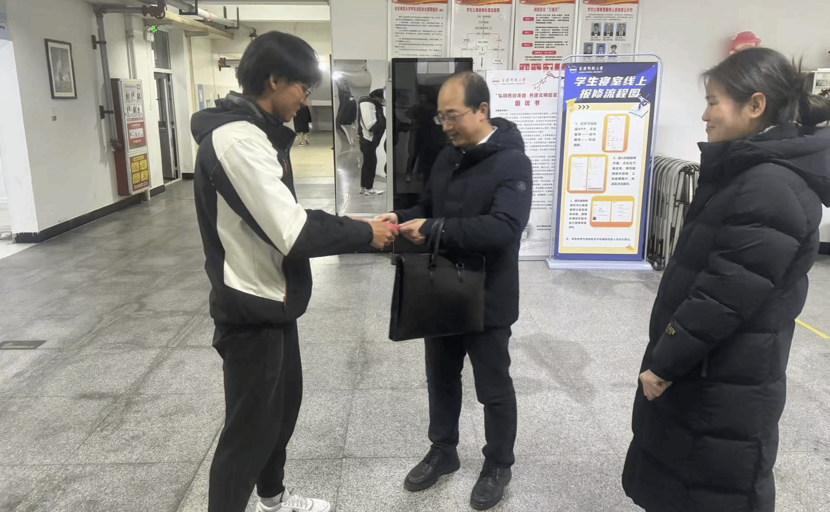 时值期末,春节将至。1月10日,体育学院党委书记王玮带领学院资助专管教师和辅导员代表一行,到学生宿舍看望慰问留校学生,为同学们带去温暖问候。