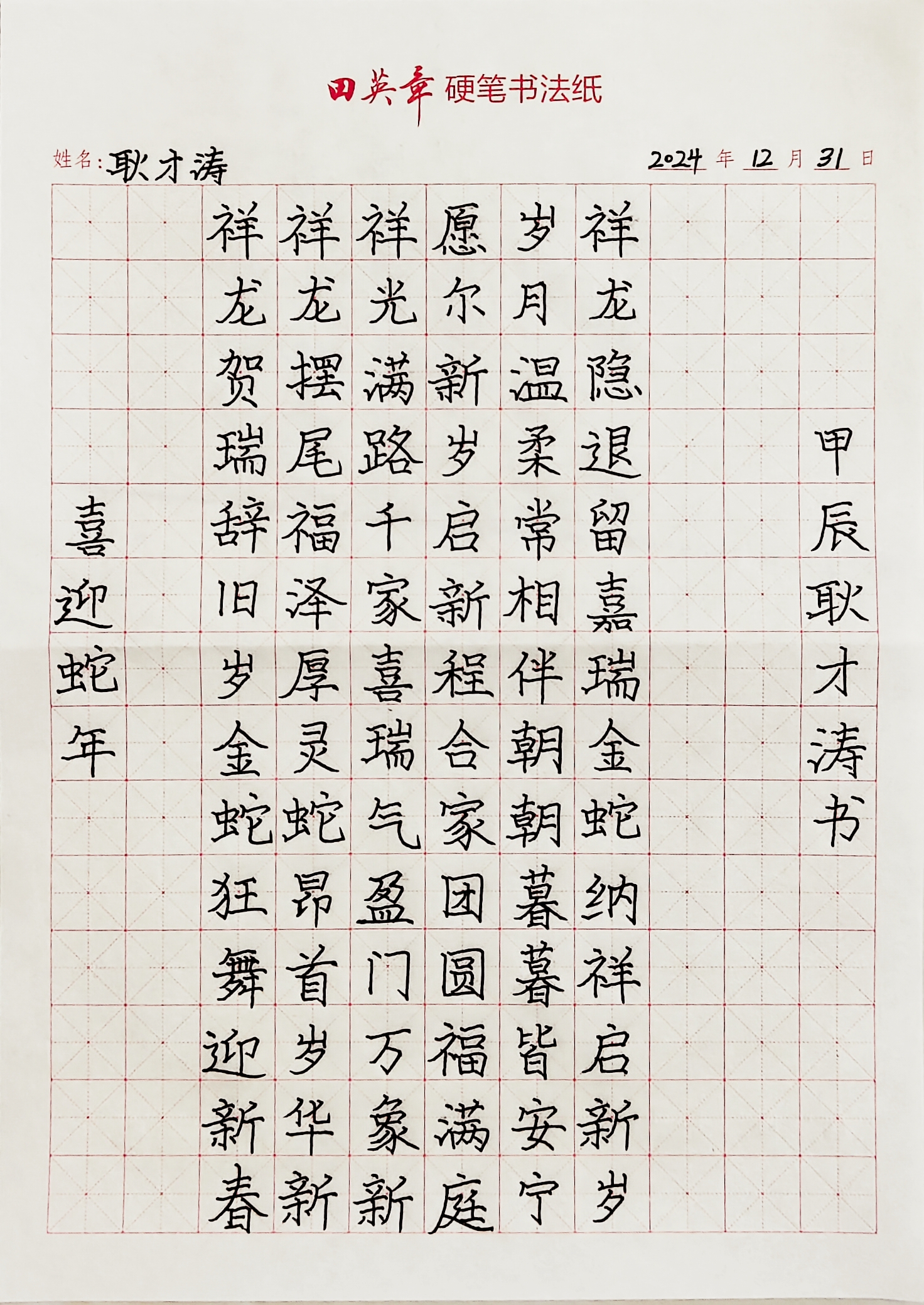 一剪一世界:创意里的文化新生。美育之“‘蛇’作品创意秀”涌现出众多匠心之作。剪纸《灵蛇献瑞》以传统窗花形式重构现代几何美学,书法作品《喜迎蛇年》将传统文化与当代审美结合。这些作品突破传统工艺边界,既彰显生肖文化的当代活力,也印证了“五育”融合的育人成效。