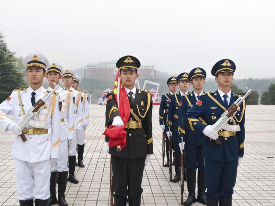 清晨,同学们整齐列队,精神抖擞。英姿飒爽的国旗护卫队迈着铿锵有力的步伐护送国旗走向升旗台。伴随着激昂雄壮的国歌声,五星红旗冉冉升起,全体学生庄严肃立,向国旗行注目礼,爱国之情在每个人心中油然而生。
