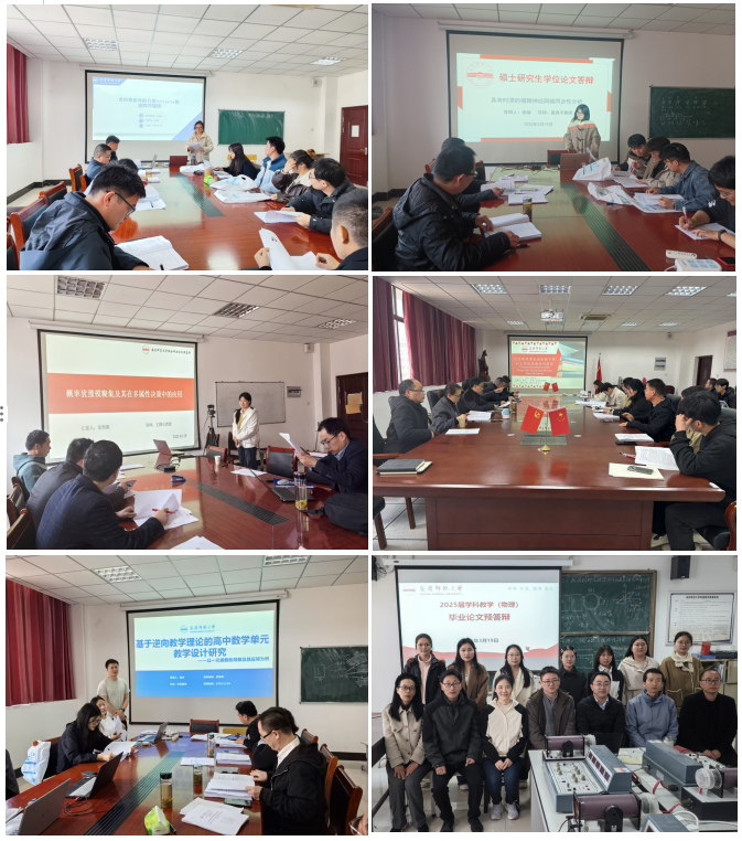 3月19日至3月26日,数理学院顺利完成数学、统计学、学科教学(数学)、学科教学(物理)四个硕士点2025届硕士研究生学位论文预答辩工作。参加本次预答辩的49名研究生分别安排在9个预答辩小组进行,每个预答辩组由1名组长、4名专家教师和1名答辩秘书组成,本次预答辩共有54名专家教师和150余名在读研究生参加。