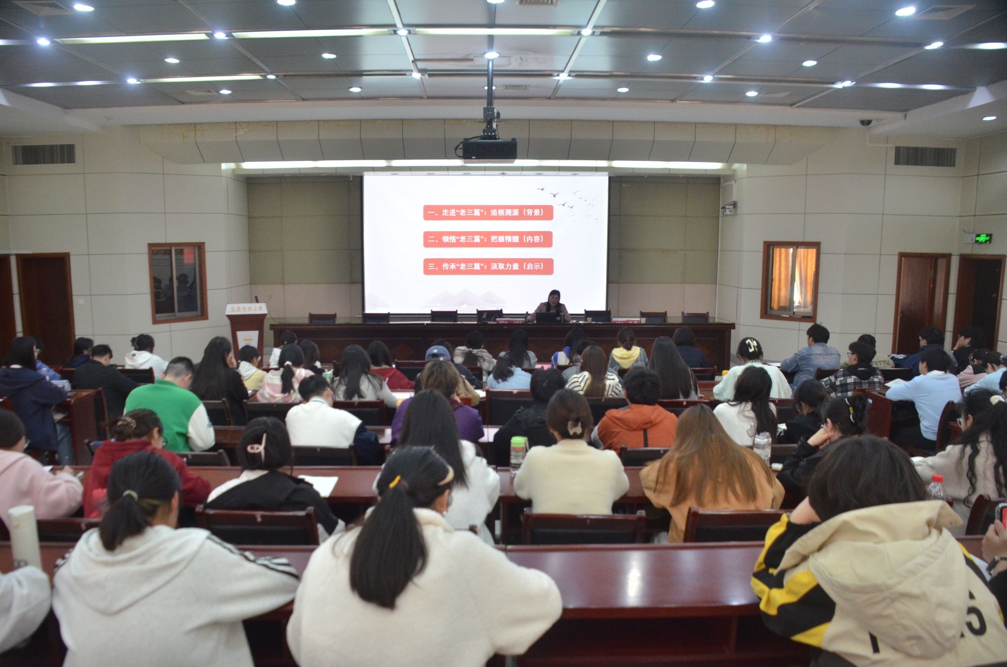 本次讲座旨在通过重温“老三篇”,引导青年学生进一步坚定马克思主义信仰,明晰“我是谁”“为了谁”“怎么干”的行为价值准则。下一步,校“青马班”、校级学生组织将一如既往地强化全心全意为人民服务的宗旨意识,以更加扎实严谨的工作作风、奋进昂扬的工作态度做好工作。(撰稿:崔同 摄影:祁斐雅 编辑:江伟 审核:汪洋 赵丽丽)