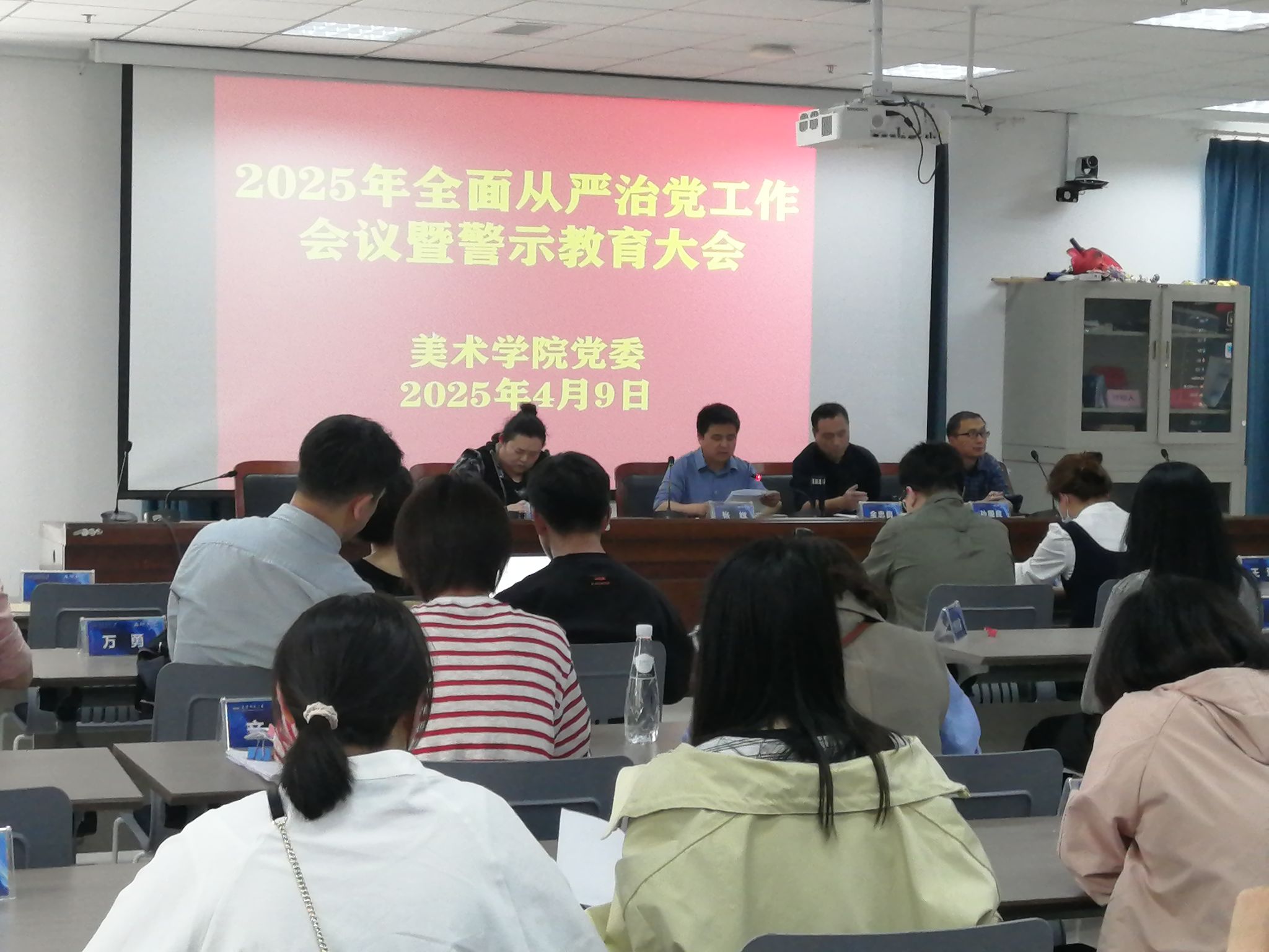 4月9日,美术学院召开2025年全面从严治党工作会议暨警示教育大会。美术学院党政班子全体成员、全体教职工参加会议。会议由美术学院党委书记张辉主持。