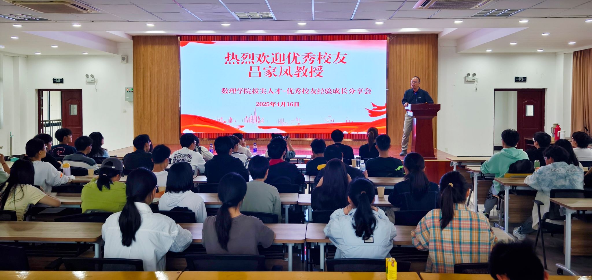 4月16日,数理学院在401报告厅举办拔尖人才培养专题讲座。数理学院特邀校友、浙江师范大学数学学院教授、博士生导师吕家凤作经验分享。数理学院部分教师、5个“稼先班”学生近200人参会。会议由数理学院党委副书记彭芳珍主持。