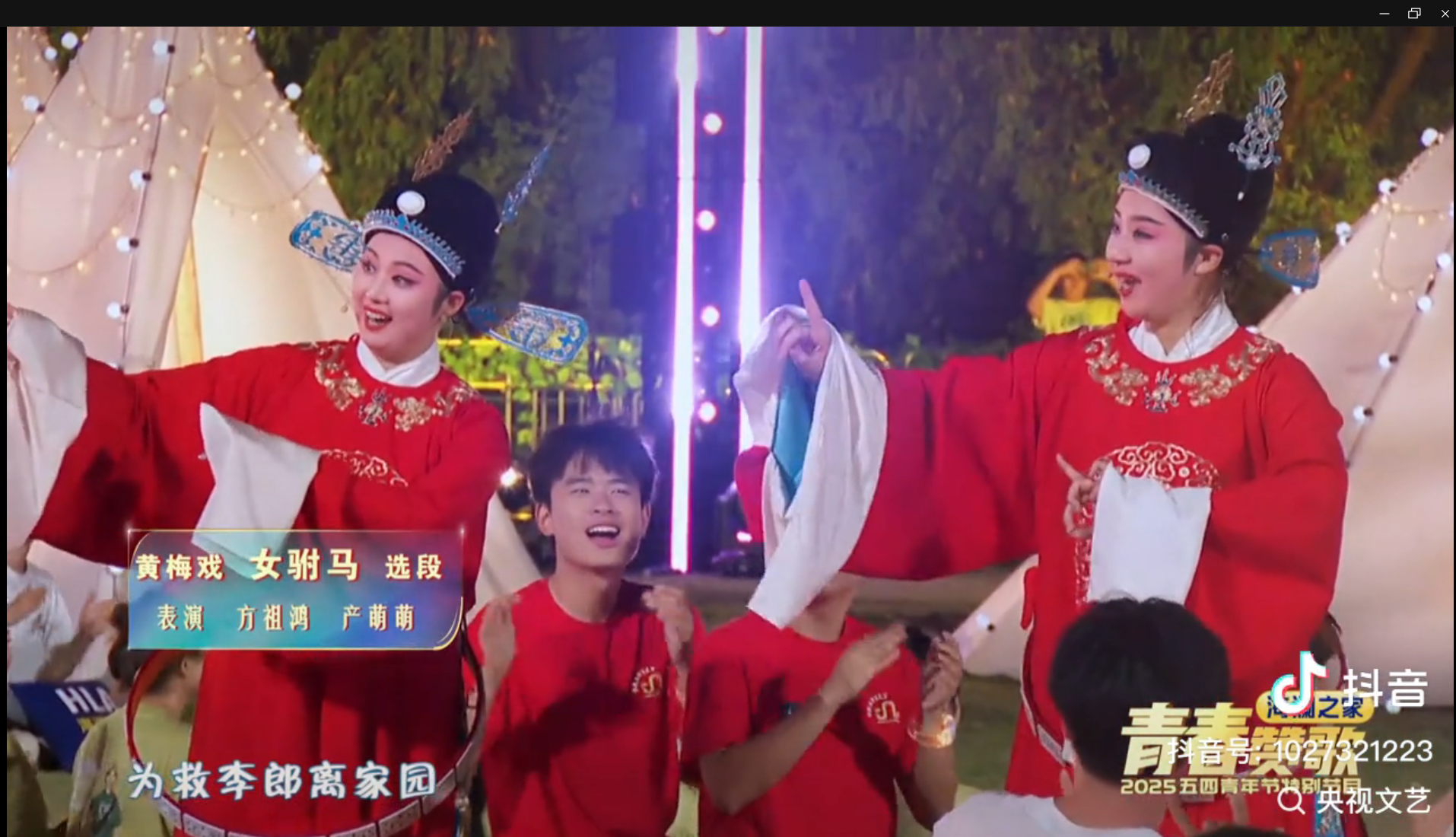 中央广播电视总台精心打造的“未来属于你”2025 五四青年节特别节目,于5月4日20:00在 CCTV-1 综合频道、CCTV-3 综艺频道、CCTV-15 音乐频道等多个平台同步播出。黄梅剧艺术学院本科表演专业的方祖鸿、产萌萌两位同学凭借扎实的专业功底,受邀参与节目录制,以精彩的舞台表现展现当代青年风采。