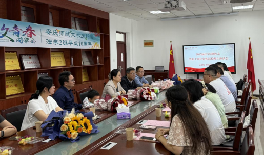 5月11日,法学院举办2015届法学2班校友毕业十周年集体返校活动。2015届法学2班辅导员、校党委巡察办主任汪博武,法学院校友分会会长、党委书记钱敏,法学院副院长邱少晖,法学院校友分会秘书长李丹以及任课教师代表张宗高等与校友代表、在校生代表在法学楼301会议室举行师生座谈会。