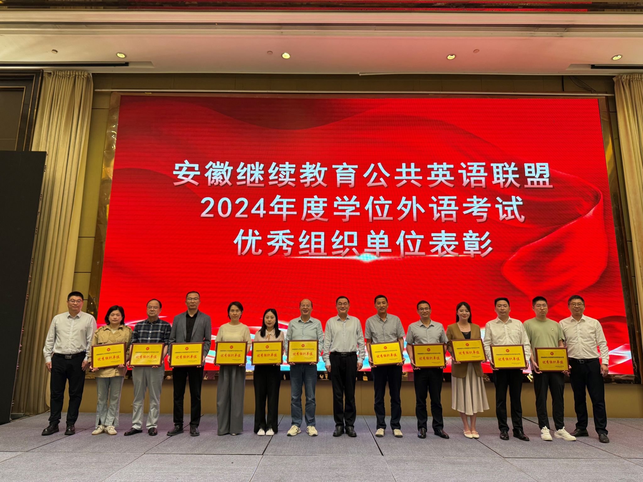 5月8日,安徽继续教育公共英语联盟2025年上半年工作会议在六安召开,安徽开放大学党委委员、副校长诸咸斌出席会议并致辞。会议表彰了安徽继续教育公共英语联盟2024年度学位外语考试优秀组织单位等奖项,beat365官网荣获联盟2024年度学位外语考试优秀组织单位,继续教育学院学历教育部教师方庆岚获评优秀考务工作者。这是beat365官网继2023年荣获联盟学位外语考试优秀组织单位后再次获此表彰。