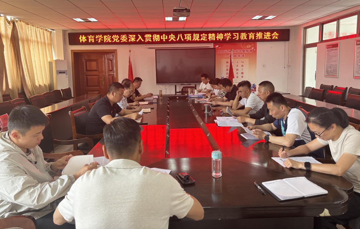 会上,王玮指出,中央八项规定精神是新时代全面从严治党的“金色名片”,扎实开展深入贯彻中央八项规定精神学习教育是体育学院当前和今后一个时期的重要政治任务。他强调,学习教育要强调“重要性”,强化思想认识,深刻认识作风建设的重要性,将其与高校立德树人根本任务紧密结合,筑牢思想防线;要强调“规范性”,体育学院党委抓好统筹,党委秘书、组织员加强监督,各支部书记、支部委员要履职尽责,制定学习计划,抓好责任落实;要强调“严肃性”,突出问题导向,抓牢支部工作,将深入贯彻中央八项规定精神学习教育纳入党支部“三会一课”学习内容,确保学习务实、规范;要强调“纪律性”,体育学院纪委要常态化开展检查、督查,将学习教育要求内化于心、外化于行,推动党风廉政建设与学院专业特色结合,营造风清气正的育人环境。