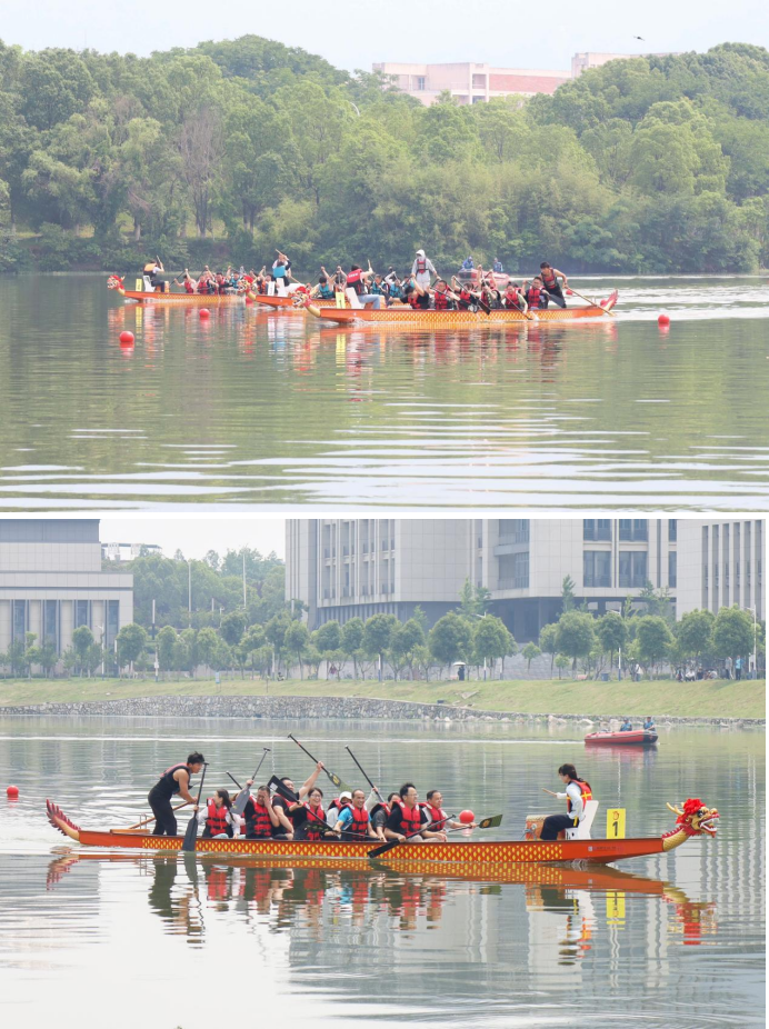 5月25日,校园体育文化节暨第三届大学生龙舟赛、教职工龙舟友谊赛于学校龙山校区双龙湖举行。12支学生队伍展开激烈角逐,8支教工队伍携手共赛,为千余名师生呈现水上“运动盛宴”。