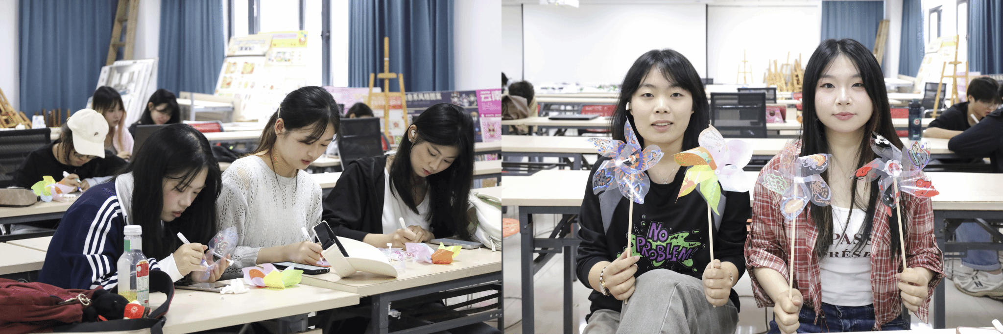 本次志愿活动通过搭建DIY风车制作平台,让同学们在动手、动脑间提升专业技能与审美素养,同时也是一种心理疗愈的新方式。据悉,美术学院将创新活动形式,结合“5·25”大学生心理健康节、志愿服务、毕业季文明离校等元素,持续开展系列美育实践活动,吸引更多学生参与,切实推进德智体美劳“五育”并举。(撰稿:学生记者 汪巧 姚梦茹 摄影:学生记者 刘奕欣 黄劲飞 编辑:江伟 审核:金忠良 赵丽丽)