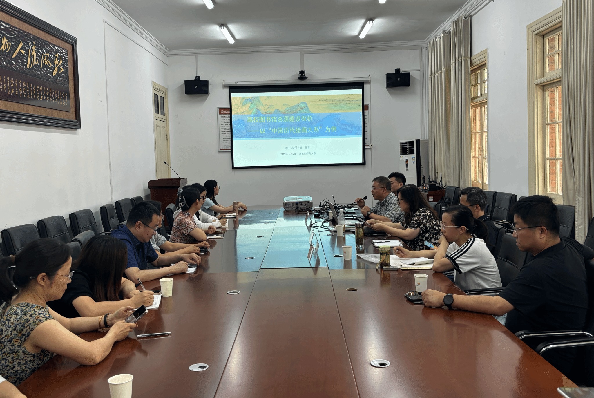 6月6日,浙江大学图书馆资源发展总监、CALIS资源建设专家组副组长、浙江省高校图工委文献资源建设专业委员会副主任张军先生应邀来校讲学,作“高校图书馆资源建设探析——以‘中国历代绘画大系’项目为例”的主题报告。本次报告会由图书馆馆长刘燕主持,beat365官网图书馆、安庆市图书馆相关人员参会。