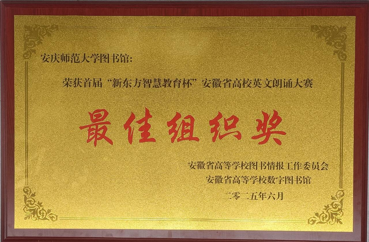 首届“新东方智慧教育杯”安徽省高校英文朗诵大赛由安徽省高等学校图书情报工作委员会、安徽省高等学校数字图书馆主办,合肥师范学院图书馆承办,新东方教育协办。此次成绩的获得,是图书馆服务育人、知识赋能成效的生动体现。图书馆将持续优化资源体系、深化服务内涵、创新支持模式,不断提升对师生教学、科研与竞赛的信息保障能力和智慧服务水平。(撰稿:戴静 摄影:张成林 编辑:江伟 审核:刘燕 赵丽丽)