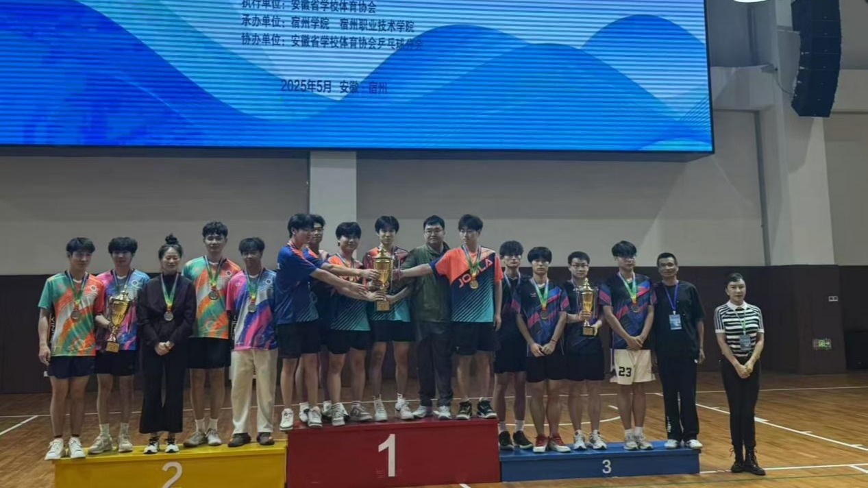 5月29日,2025年安徽省学生体育联赛大学生乒乓球比赛在宿州市落下帷幕。本次比赛由安徽省教育厅、安徽省体育局主办,宿州学院和宿州职业技术学院承办,共有来自全省63所高校的400余名运动员参赛。beat365官网乒乓球队由陈国元、黄安泉两位教师担任教练,带队出征,荣获1枚铜牌、1个二等奖、4个三等奖。
