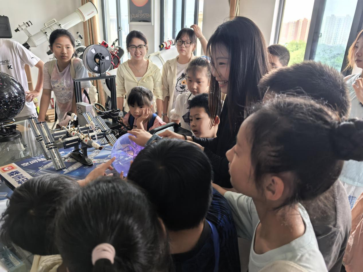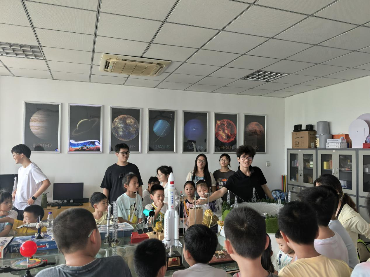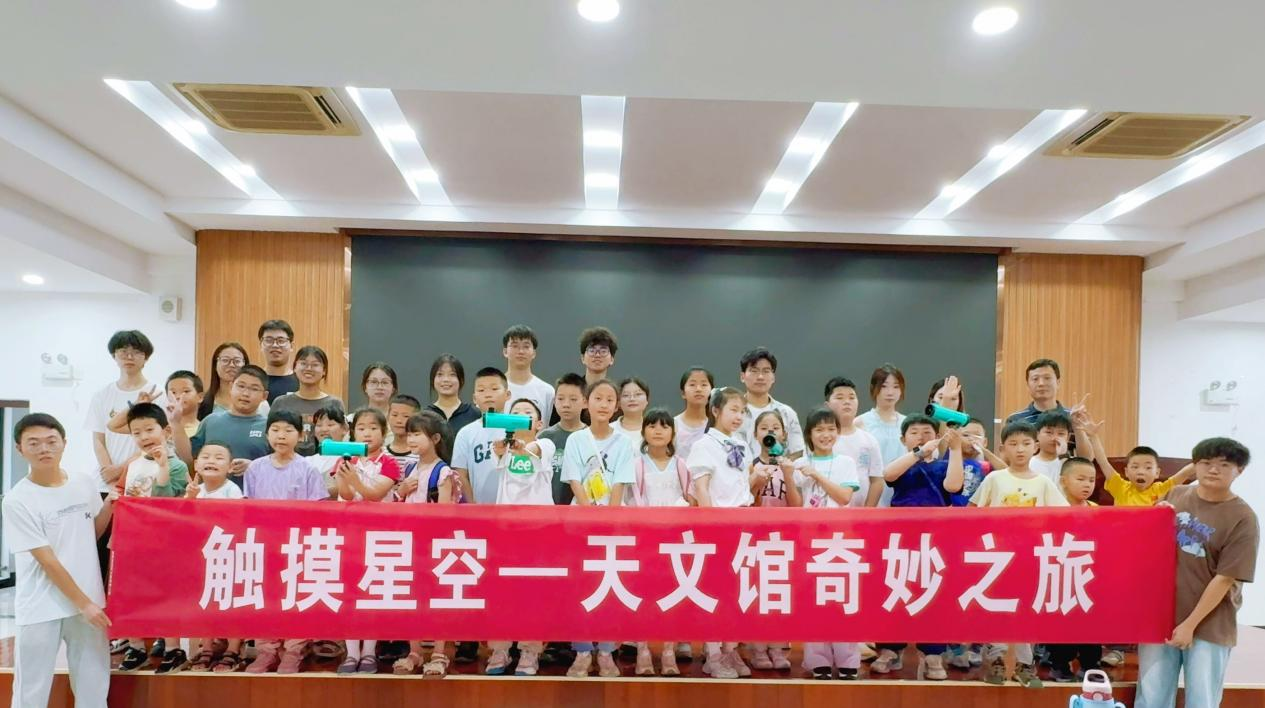 互动提问环节中,孩子们围绕实验原理与天文知识踊跃发言,与讲解员热烈交流,在问答中深化认知。活动严格落实安全保障与纪律要求,60余名师生在有序氛围中参与了“理论讲解+实验操作+宇宙探秘”的多元体验。最后,大家共同拍摄主题合影,定格下探索宇宙的难忘瞬间。