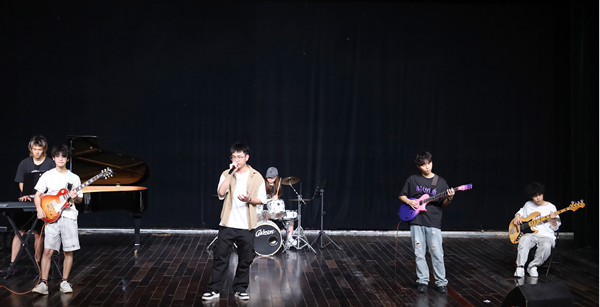 2023级计算机技术专业刘远正用手机记录下动人旋律,“这位演唱者的声音很有感染力,录下来可以在压力大时缓解焦虑。”他表示,期末复习带来的紧绷神经,在这场晚会上得到了有效的“心灵按摩”。“风景线”乐队成员2024级音乐学专业饶俊杰介绍,“我们特意选择能带动全场互动的歌曲,希望用音乐传递更多欢乐。”该乐队经验丰富,曾登上怀宁县文化节及安庆空军基地元旦晚会的舞台。