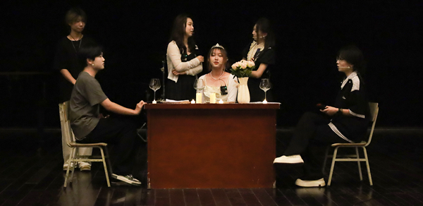 热血激情的乐队演奏《想去海边》点燃全场,带领观众沉浸式释放压力。民族乐器笙与钢琴创新融合演绎《牧场春色》,展现了东西方音乐碰撞的魅力。反套路话剧《后妈茶话会》以独特叙事打破童话反派刻板印象,令人耳目一新。表演者2024级音乐学专业蔡一宁表示,剧中“后妈”们极具辨识度的嗓音、飞快的语速、密集的台词和高难度情感转换是最大亮点也是挑战。团队为打磨细节,一句台词的重音都需对着镜子反复调整数十遍。