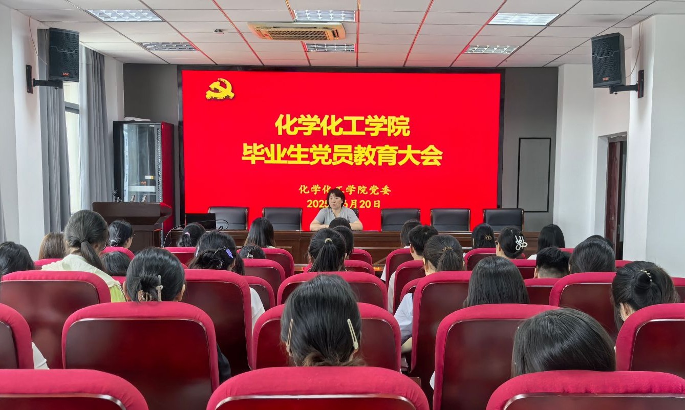 6月20日,化学化工学院召开2025届毕业生党员教育大会。化学化工学院党委副书记、纪委书记鲍青燕、学生党支部书记、毕业生党员、新接收预备党员参加会议。