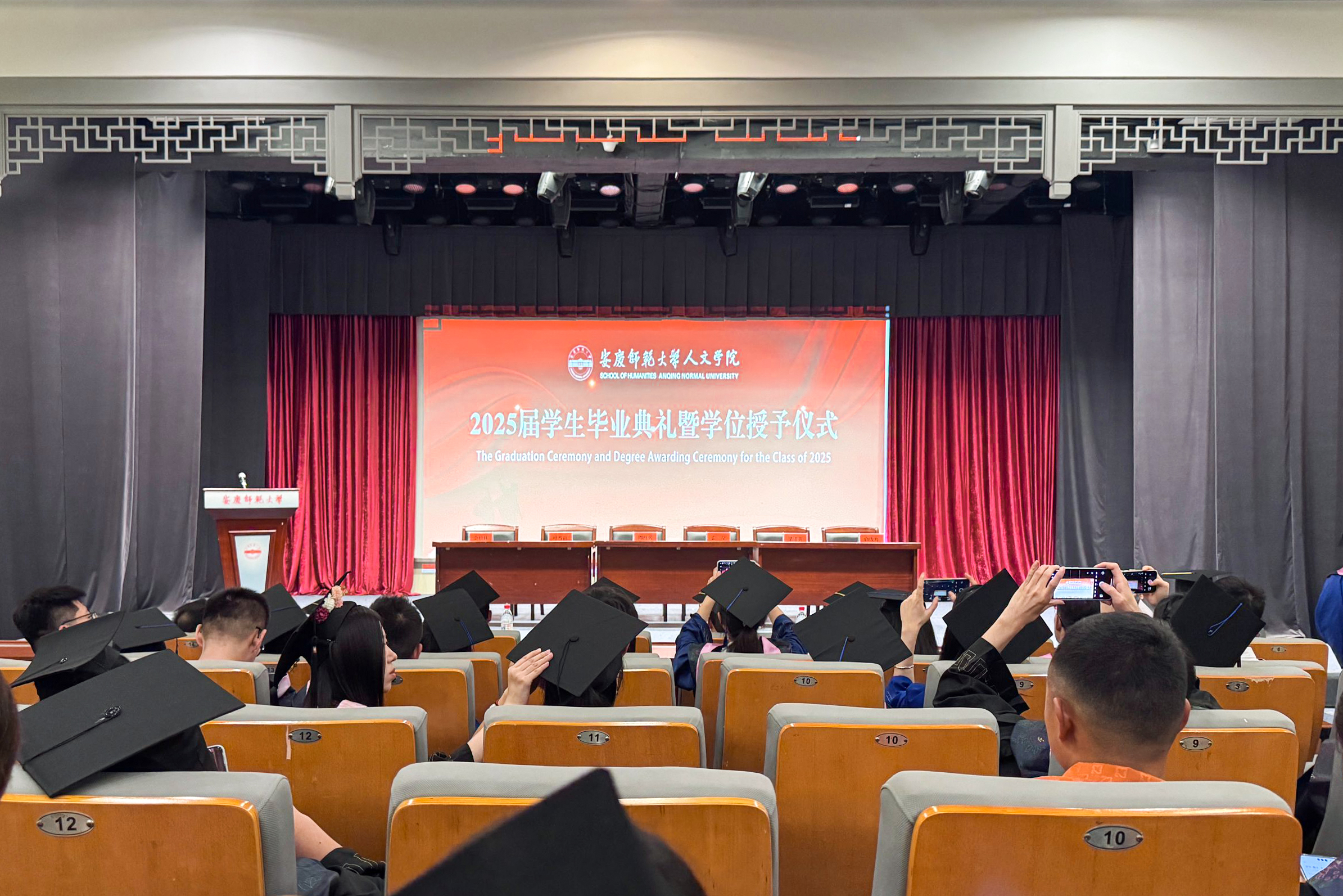 6月20 日,人文学院在菱湖校区图书馆报告厅举办2025届学生毕业典礼暨学位授予仪式。人文学院党政班子成员、学位评定委员会委员、教师代表、毕业生及家长代表参加仪式。仪式由人文学院副院长周红兵主持。仪式以线上线下相结合的形式与学校毕业典礼同步进行。