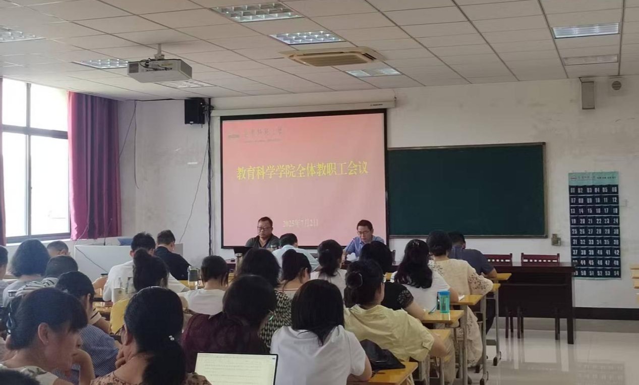 教育科学学院院长吴云助总结回顾了学院上半年工作情况,对标对表2025年各项目标任务通报了工作进展情况,并对暑期有关重点工作进行了安排布置。他希望,全体教职工以学科建设为龙头,强化有组织科研和团队建设,以重点工作突破带动学院发展整体实力提升,全力以赴完成全年目标任务。