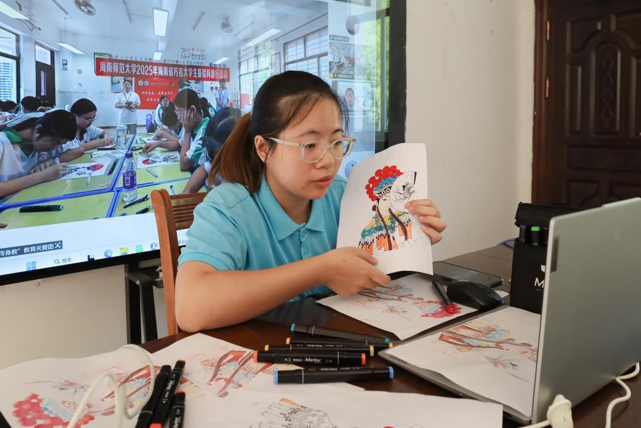 7月8日,体育学院“三下乡”实践团队与海南师范大学实践团开展线上连线活动,为海南师范大学实践团基层科普地区儿童送去黄梅戏文化课堂。实践团队成员学前教育专业2023(2)班的戴璐璇通过有趣生动的讲解与互动,让远方的孩子们近距离感受黄梅戏这一国家非物质文化遗产的独特魅力。