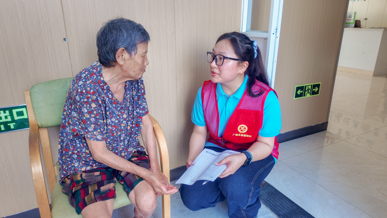 除了身体状况的关注,团队也注重老人们的心理需求。“奶奶,今天早上吃饭了吗?”“今天早上有没有出去运动呀?”“爷爷,待在这里开不开心呀?”……团队成员以拉家常的方式拉近与老人的距离,再引导他们填写心理调查问卷,内容涵盖情绪状态、生活满意度与兴趣、心理认知与感受、行为意愿四个维度,评估其是否有患老年抑郁的风险。结果表明,多数老人在这里生活得舒心,护工照料也细致全面;少数老人因自身经历,偶尔情绪比较低沉,但在成员们陪伴交流时,也会露出笑意。