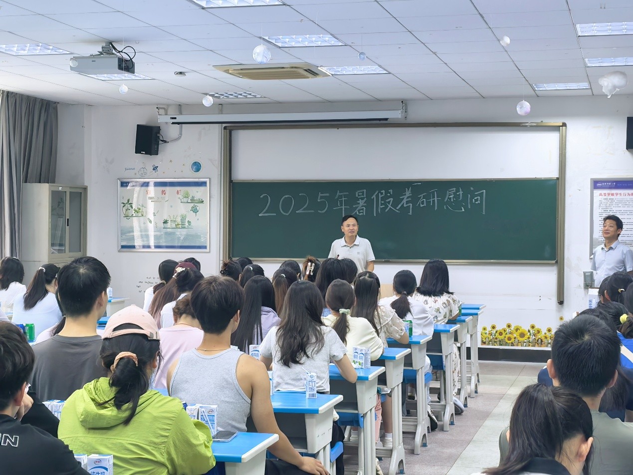 夏斐代表资源环境学院向留校学子送上关怀与鼓励。他肯定同学们留校钻研、逐梦前行的决心与行动,赞扬大家不畏酷暑、专注学习的坚韧品质,强调这是资源环境学院优良学风薪火相传的重要源泉。他叮嘱同学们,复习冲刺阶段要将身心健康放在首位,科学规划作息,劳逸结合,以最佳状态投入学习;勉励大家坚定信念,把备考挑战作为成长阶梯,保持定力、稳扎稳打,并预祝全体同学考场告捷、金榜题名。
