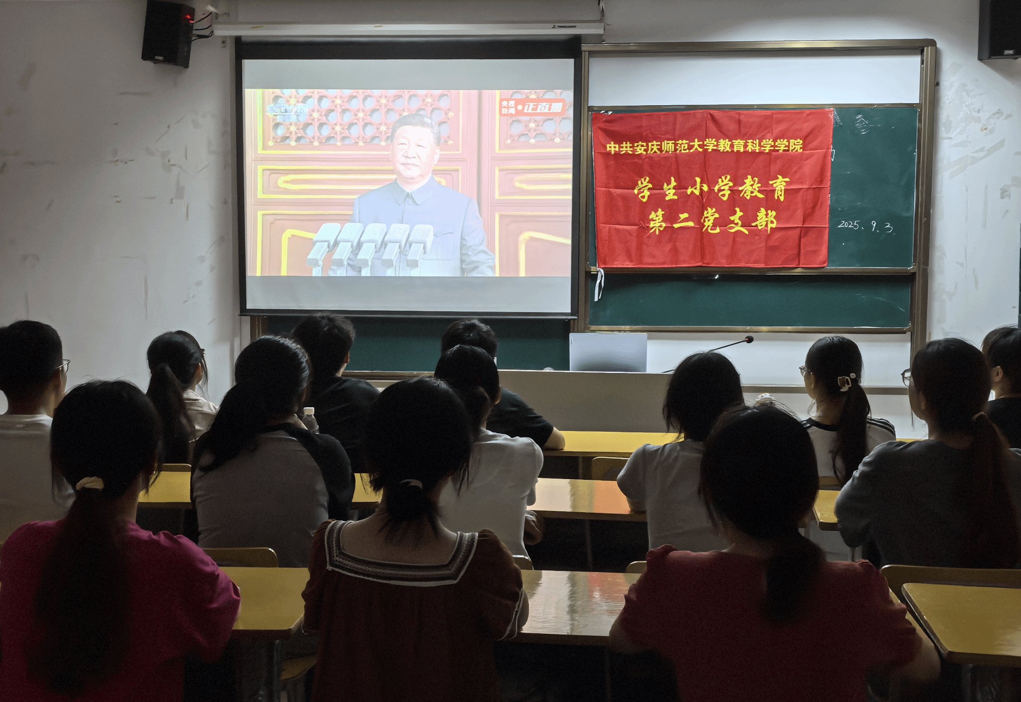 9月3日上午,纪念中国人民抗日战争暨世界反法西斯战争胜利80周年大会在北京隆重举行。教育科学学院精心组织师生观看大会直播,深刻体悟伟大抗战精神,激发磅礴奋进力量。